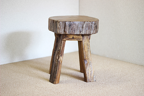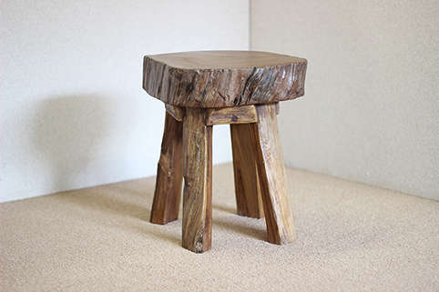 チーク古木の切り株を座面に用いた、輪切り椅子WD-011/bfです。