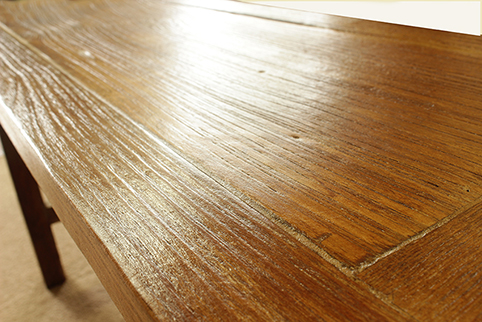 天板の枠内には、チーク古木自然杢凹凸が大変美しい一枚板を用いて製作されております!