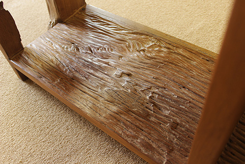 伐採後約、150年〜50年もの間、自然の風雨に晒され、ようやくこの様に非常に美しい杢の凹凸が出来ます。チーク材だからこそ、現在でもこの様に1つの作品として生き残っているのです。手で触れてもその感触は凄く優しく、時の流れを感じる事が出来ます。日本でこれ程自然素材の凹凸の美しい品物は、なかなか見る機会が少ないと思います。