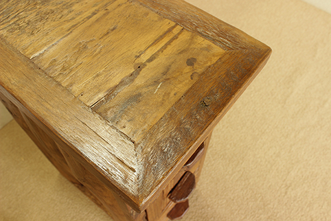 ★自然杢(しぜんもく)とは、東南アジアで約50年〜150年もの時を経て、天然の風雨などに 晒されて出来た(つくられた)チーク古木材の木の表面の凹凸(おうとつ)の事です。
