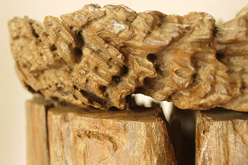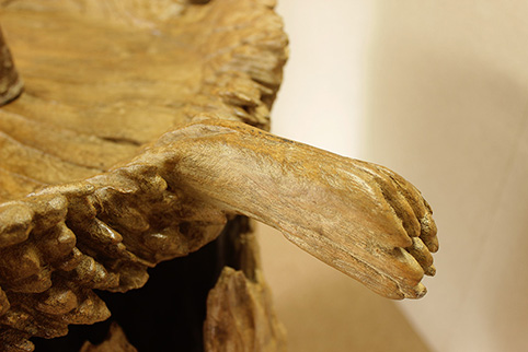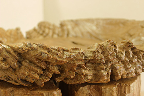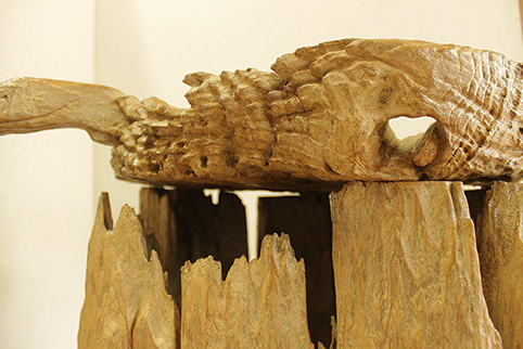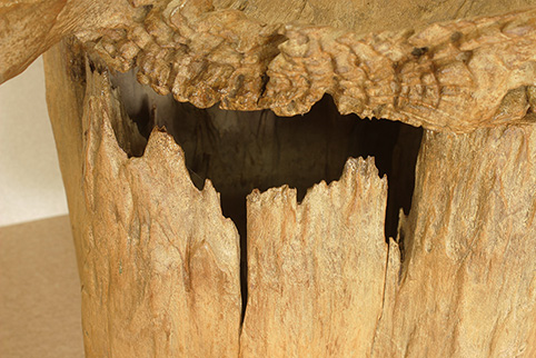 伐採後約、150年〜50年もの間、自然の風雨に晒され、ようやくこの様に非常に美しい杢の凹凸が出来ます。チーク材だからこそ、現在でもこの様に1つの作品として生き残っているのです。手で触れてもその感触は凄く優しく、時の流れを感じる事が出来ます。日本でこれ程自然素材の凹凸の美しい品物は、なかなか見る機会が少ないと思います。