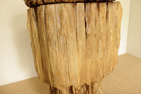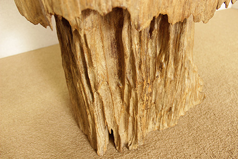 ▲上部の分厚い丸い一枚板と、下部の丸太部分は上に固定されております。