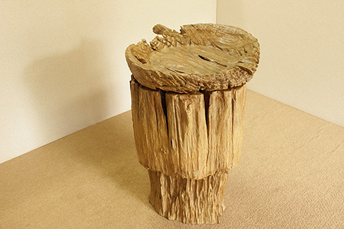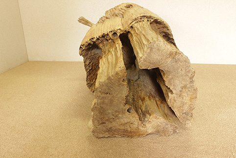 チーク古木材の図太い根本部分(埋もれ品)と、