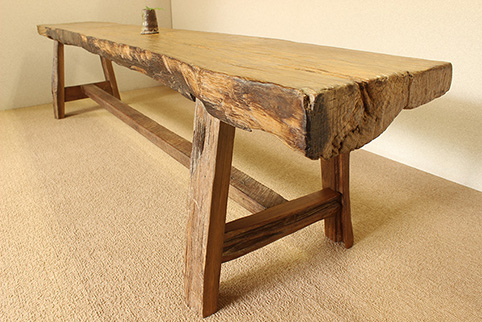 長さ2m08pの極太一枚板ロングテーブルを入荷する事が出来ました。 これ程厚みのあるチーク古木の一枚板は、現地でもなかなか見れなくなりました。