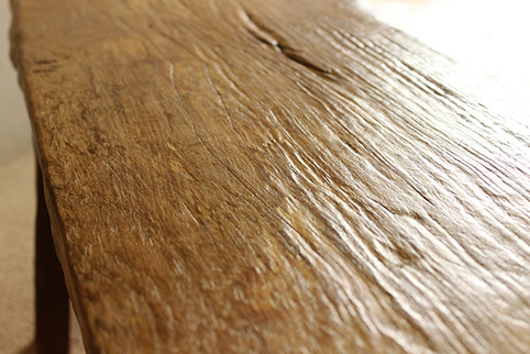 ★自然杢(しぜんもく)とは、東南アジアで約50年〜150年もの時を経て、天然の風雨などに 晒されて出来た(つくられた)チーク古木材の木の表面の凹凸(おうとつ)の事です。