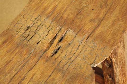 ▲脚を繋ぐ横棒に、割れ痕がございます。