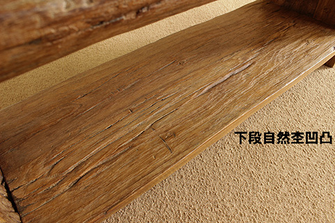 伐採後約150年〜50年もの間、自然の風雨に晒され、ようやくこの様に非常に 美しい杢の凹凸が出来ます。チーク材だからこそ、現在でもこの様に1つの作品として生き残っているのです。手で触れてもその感触は凄く優しく、時の流れを感じる事が出来ます。日本でこれ程自然素材の凹凸の美しい品物は、なかなか見る機会が少ないと思います。