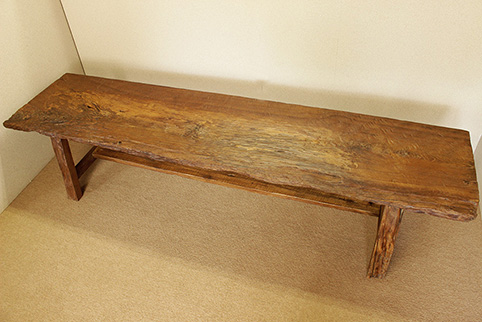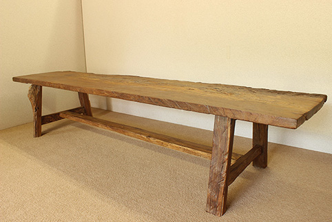 長さ2m15pの一枚板ロングベンチテーブルを入荷する事が出来ました。