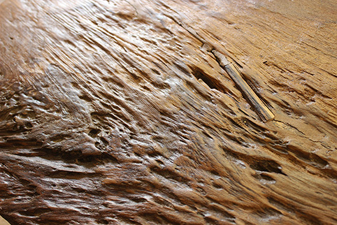 ★自然杢(しぜんもく)とは、東南アジアで約50年〜150年もの時を経て、天然の風雨などに 晒されて出来た(つくられた)チーク古木材の木の表面の凹凸(おうとつ)の事です。