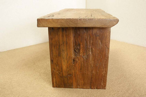 伐採後約150年〜50年もの間、自然の風雨に晒され、ようやくこの様に非常に 美しい杢の凹凸が出来ます。チーク材だからこそ、現在でもこの様に1つの作品として生き残っているのです。手で触れてもその感触は凄く優しく、時の流れを感じる事が出来ます。日本でこれ程自然素材の凹凸の美しい品物は、なかなか見る機会が少ないと思います。