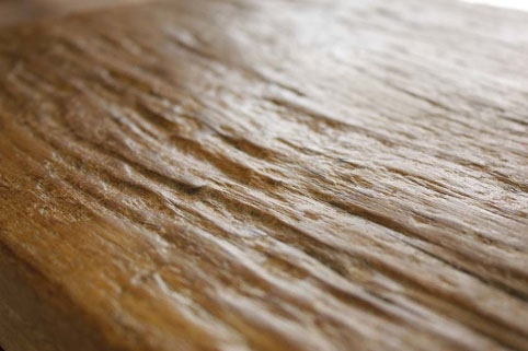 ▲天板、下段には自然杢の凹凸がございます。板の上に薄い紙などを直接置き文字を書いたりする事は出来ません。