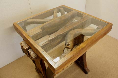 | チーク古木(総無垢材)、ガラス |