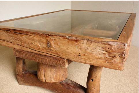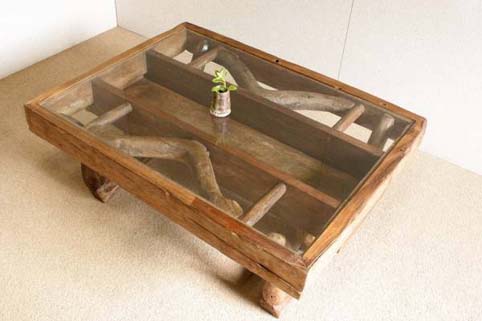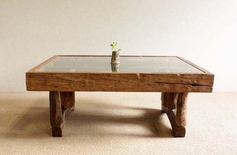 | チーク古木、脚マイデン古木、ガラス(総無垢材) |