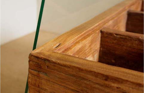 天板のガラスは簡単に取り外せますのでお気に入りの品物を中枠の中に入れ、上からガラスをのせて眺めながら食事などを楽しんで下さい。