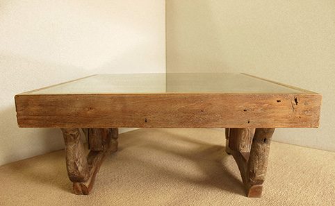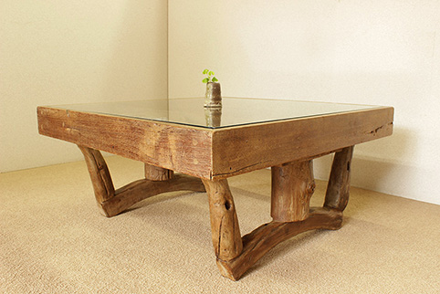 | チーク古木、脚マイデン古木、ガラス(総無垢材) |