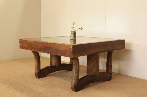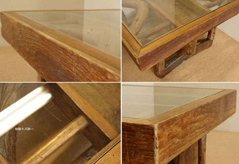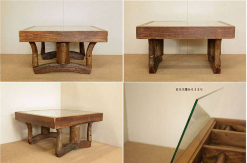 | チーク古木、脚マイデン古木、ガラス(総無垢材) |