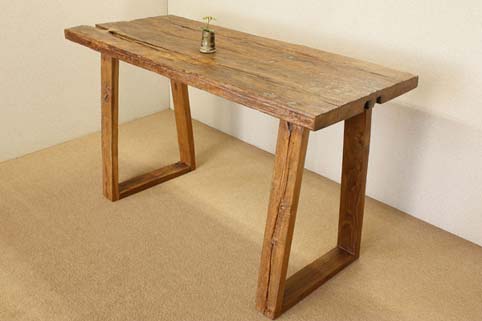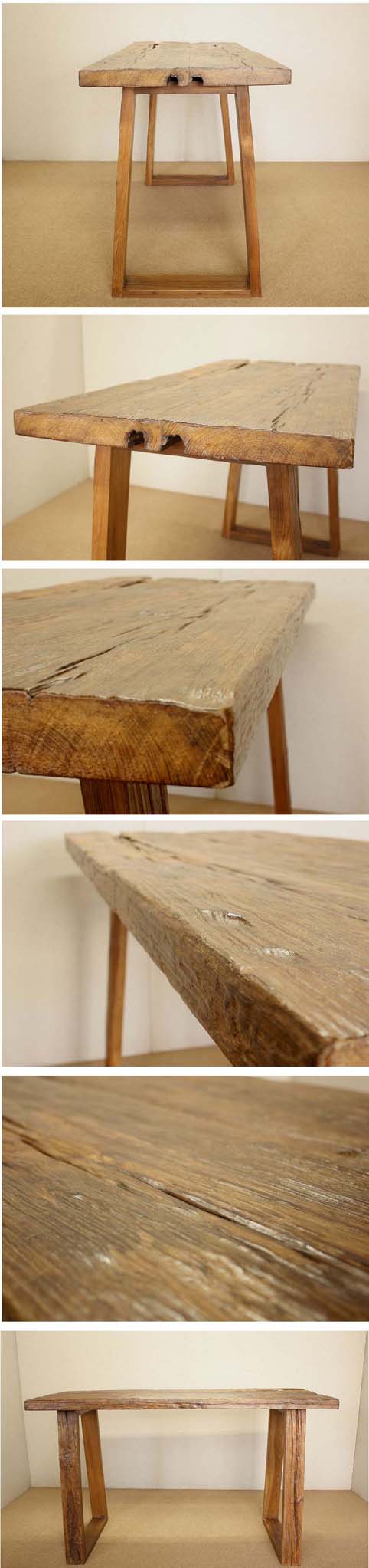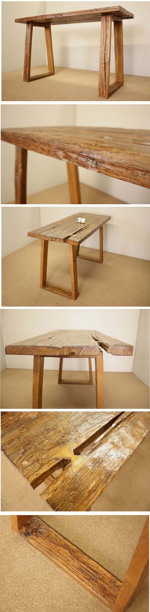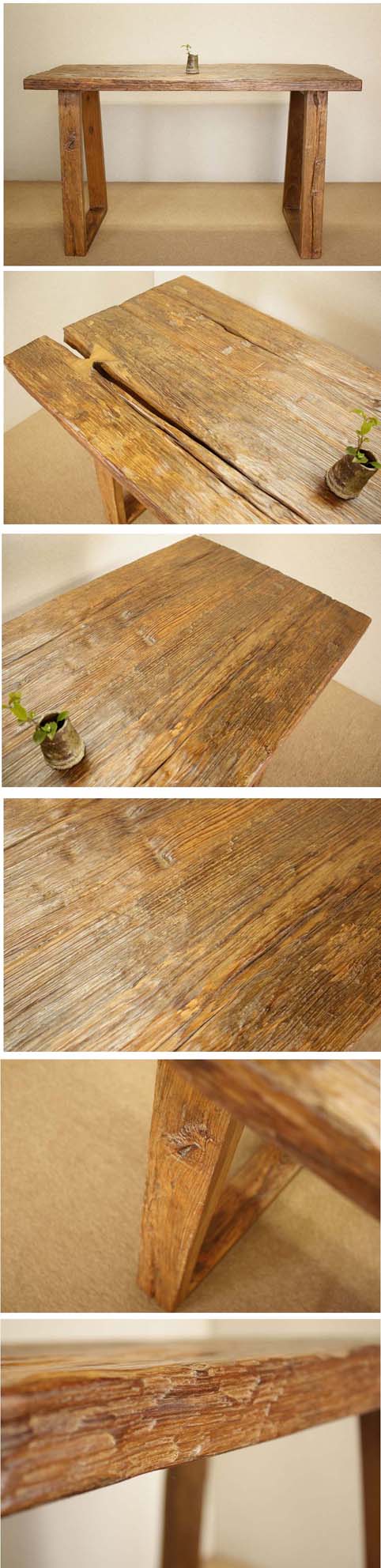 分厚い2枚接ぎのチーク古木の天板を用いて作られた、長方極厚テーブルの出品です。
