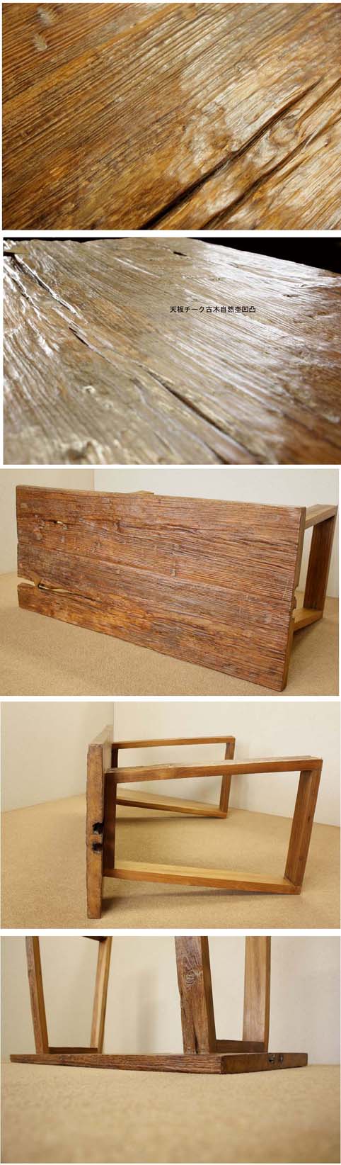 伐採後約150年〜50年もの間、自然の風雨に晒され、ようやくこの様に非常に 美しい杢の凹凸が出来ます。チーク材だからこそ、現在でもこの様に1つの作品として生き残っているのです。手で触れてもその感触は凄く優しく、時の流れを感じる事が出来ます。日本でこれ程自然素材の凹凸の美しい品物は、なかなか見る機会が少ないと思います。