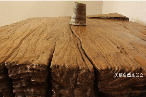 晒されて出来た(つくられた)チーク古木材の木の表面の凹凸(おうとつ)の事です。