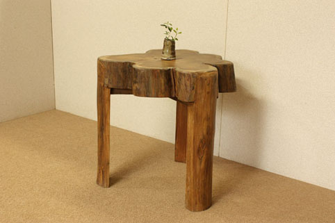 天然素材、大木のチーク材を輪切りにした、切り株テーブル/mmです。