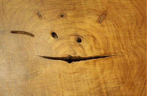 ▲天板は木口です。直射日光や、極端なお部屋の乾燥により、割れの広がる可能性はございます。