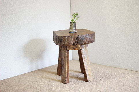 チーク古木の切り株を座面に用いた、輪切り椅子WD-011/bfです。