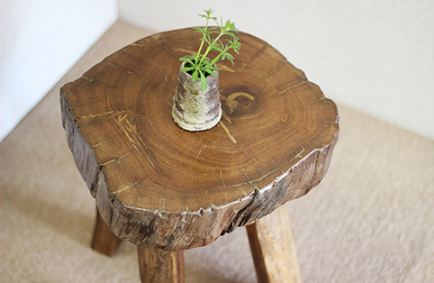 腰掛けるだけでは無く、お部屋のコーナー部分に飾り、切り株の上にグリーンを置いて、お楽しみ下さい。