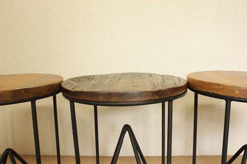 脚の鉄はそれ程古い物を使用しておりませんが、座面の凸凹した素材と、艶感の少ない細い鉄脚の組み合わせがとても面白いと思います♪☆