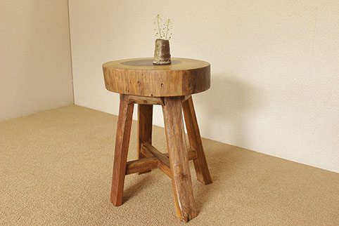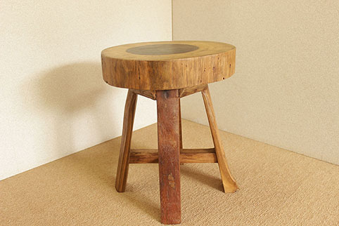 チーク古木の切り株を座面に用いた、古木輪切り椅子/WD-012aです。