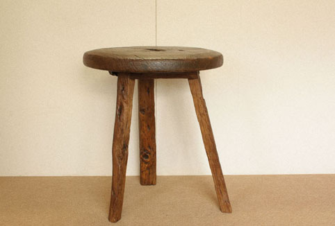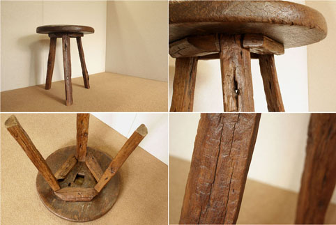 三本の凹凸のある脚はチーク古木材です。分厚い天板と比較すると少し弱い感じがしますが、それが逆に面白かったりもします♪