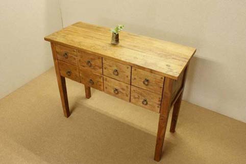 全体的に自然のままのチーク色に近い、ナチュラルな風合いの八引きカウンターデスクです。