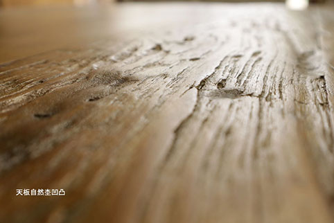 天然材独特の板の表面に凹んだ場所や、凸んだ場所、焦げ跡などがございます。