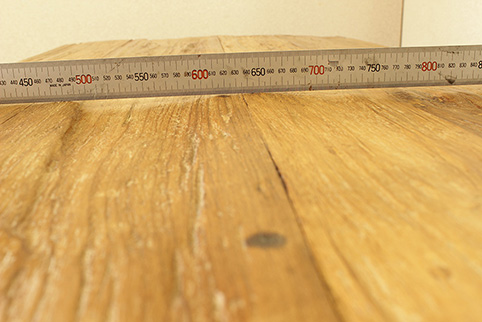 伐採後約、150年〜50年もの間、自然の風雨に晒され、ようやくこの様に非常に美しい杢の凹凸が出来ます。チーク材だからこそ、現在でもこの様に1つの作品として生き残っているのです。手で触れてもその感触は凄く優しく、時の流れを感じる事が出来ます。日本でこれ程自然素材の凹凸の美しい品物は、なかなか見る機会が少ないと思います。