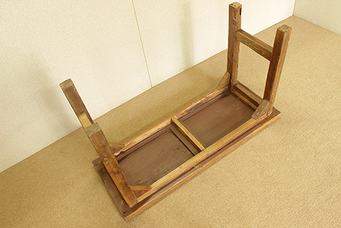 天板の枠内には、チーク古木自然杢凹凸が大変美しい一枚板を用いて製作されております!