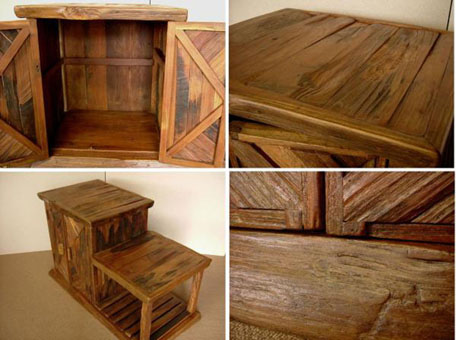 伐採後約、150年〜50年もの間、自然の風雨に晒され、ようやくこの様に非常に美しい杢の凹凸が出来ます。チーク材だからこそ、現在でもこの様に1つの作品として生き残っているのです。手で触れてもその感触は凄く優しく、時の流れを感じる事が出来ます。日本でこれ程自然素材の凹凸の美しい品物は、なかなか見る機会が少ないと思います。