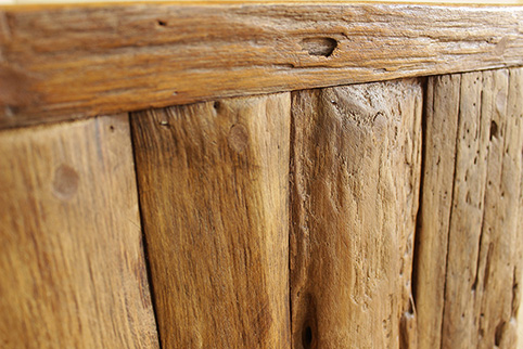★自然杢(しぜんもく)とは、東南アジアで約50年〜150年もの時を経て、天然の風雨などに 晒されて出来た(つくられた)チーク古木材の木の表面の凹凸(おうとつ)の事です。
