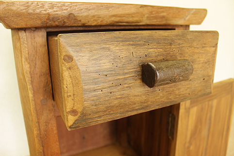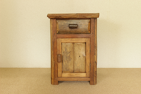 自然杢が大変美しい開き戸付き小棚です。