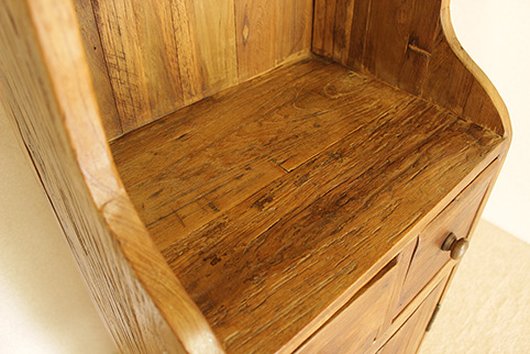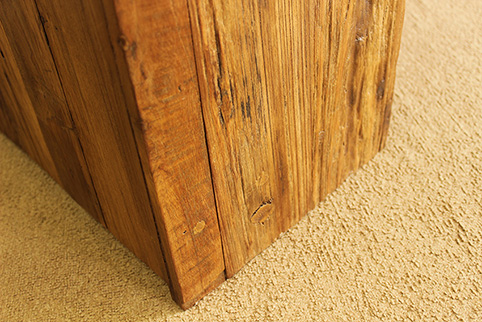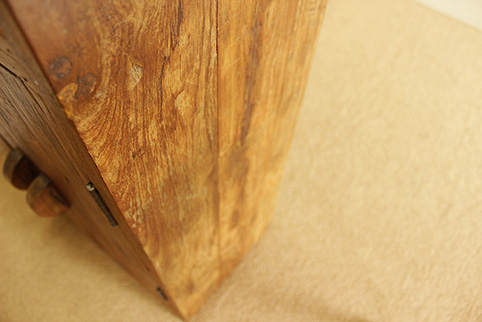 伐採後約150年〜50年もの間、自然の風雨に晒され、ようやくこの様に非常に 美しい杢の凹凸が出来ます。チーク材だからこそ、現在でもこの様に1つの作品として生き残っているのです。手で触れてもその感触は凄く優しく、時の流れを感じる事が出来ます。日本でこれ程自然素材の凹凸の美しい品物は、なかなか見る機会が少ないと思います。