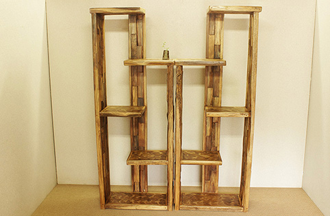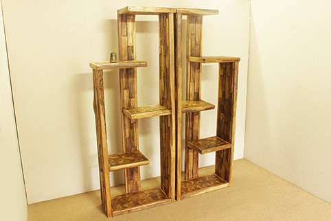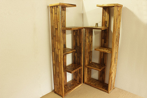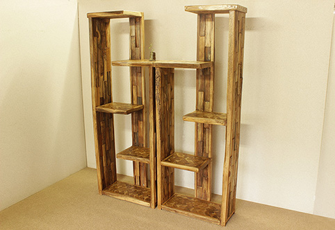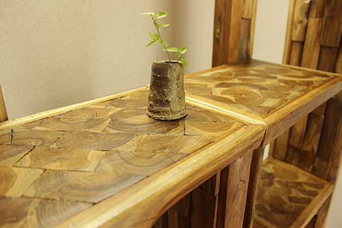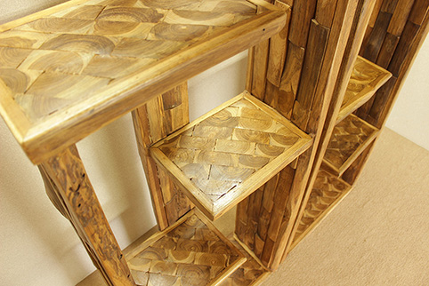チーク古木、寄木細工 違い棚/wideを新入荷しました。