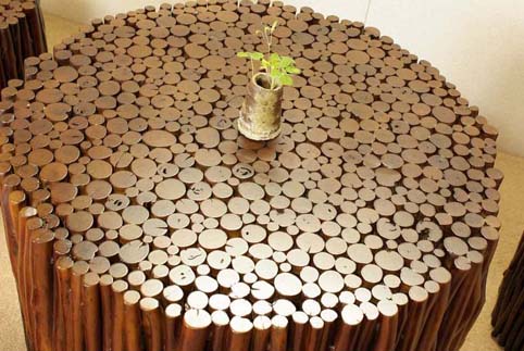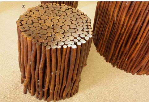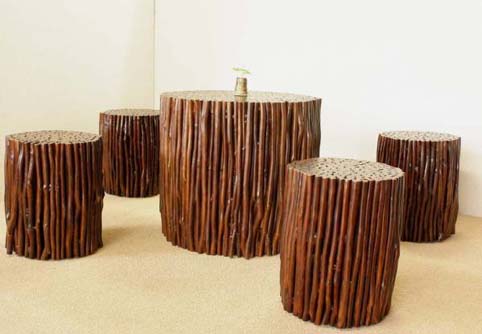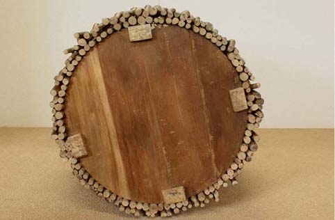 全面に無垢の小枝を組み込んで作られた、非常に珍しいテーブルセットです。