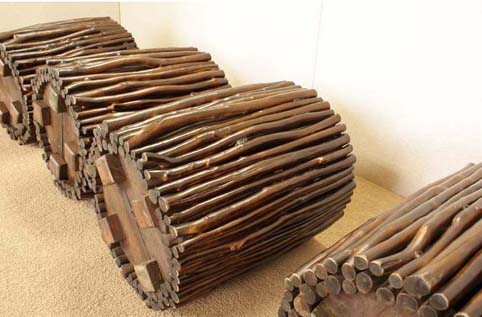 材質は不明ですが、天板や側面、座面の部分はすべて無垢の堅い小枝で製作されております。 重量の問題もあり、さすがに内部は空洞になっておりますが、重量は重く、テーブルは約45キロ、椅子は約15キロございます。他国のバイヤーが交渉中の品物でしたが、余りの美しさに高額な入手となりましたが、何とか日本に持ち帰る事に成功致しました。