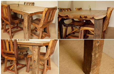 天板の自然杢の凹凸が深く大変美しいダイニングテーブルセット2mです。 何とか天然材を用いた品物を入荷する事が出来ました! 現地にも自然の力で作られた凹凸や焦げ跡など美しい品物は大変希少になっております。
