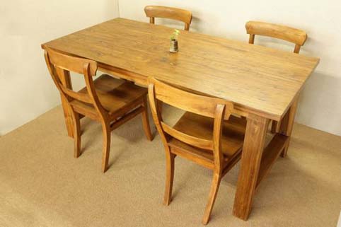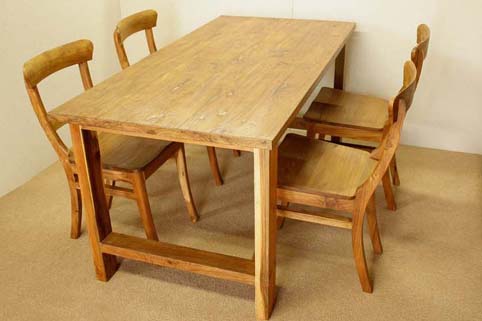 天板のチーク材独特の木目が大変美しい、生地テーブルセット/1m65pです。