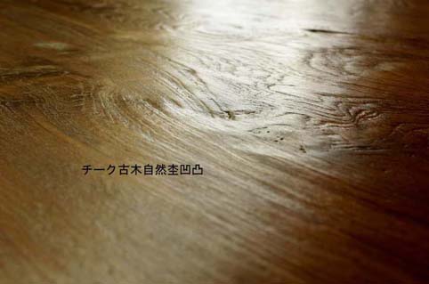 現地にも自然の力で作られた凹凸や焦げ跡など美しいチーク古木材は、大変希少になっております。