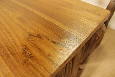 ▲天板にキズ跡、割れ修理跡がございます。