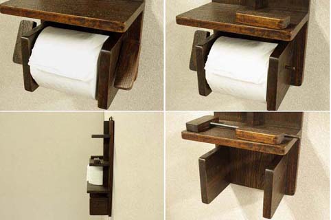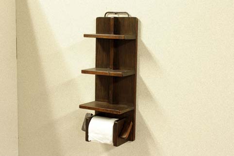 自然杢の凹凸が美しいチーク古木材を用いて作られたトイレットペーパーホルダーです。 棚の上には6個のペーパーが置けます。