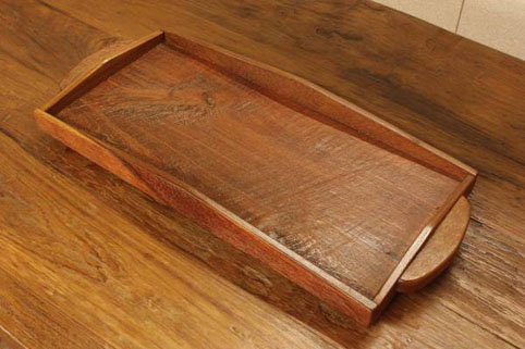 自然杢の凹凸が美しいチーク古木材を用いて作られた角盆の出品です♪ 素材だけでも価値の有る逸品です。 しっかりとつくられておりますので、安心してお使いいただけます。