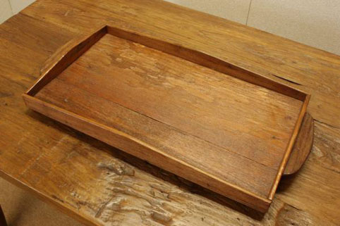 自然杢の凹凸が美しいチーク古木材を用いて作られた角盆です。素材だけでも価値の有る逸品です。 しっかりとつくられておりますので、安心してお使いいただけます。