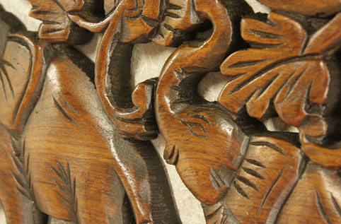 東南アジアで無垢のチーク材を切り抜き、彫刻を施した非常に珍しく手の込んだ作品です。