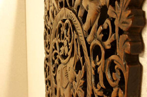 ★東南アジアで職人さんがまず切り抜き作業を行い、その後彫刻を施した非常に手の込んだ作品です。 1点1点彫模様が僅かに違いがございます。手作り品です。